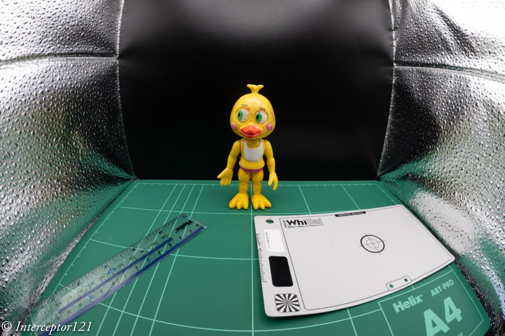 Let’s now introduce dome size which is the equivalent of depth of field in the mix in our light box shooting off centre.