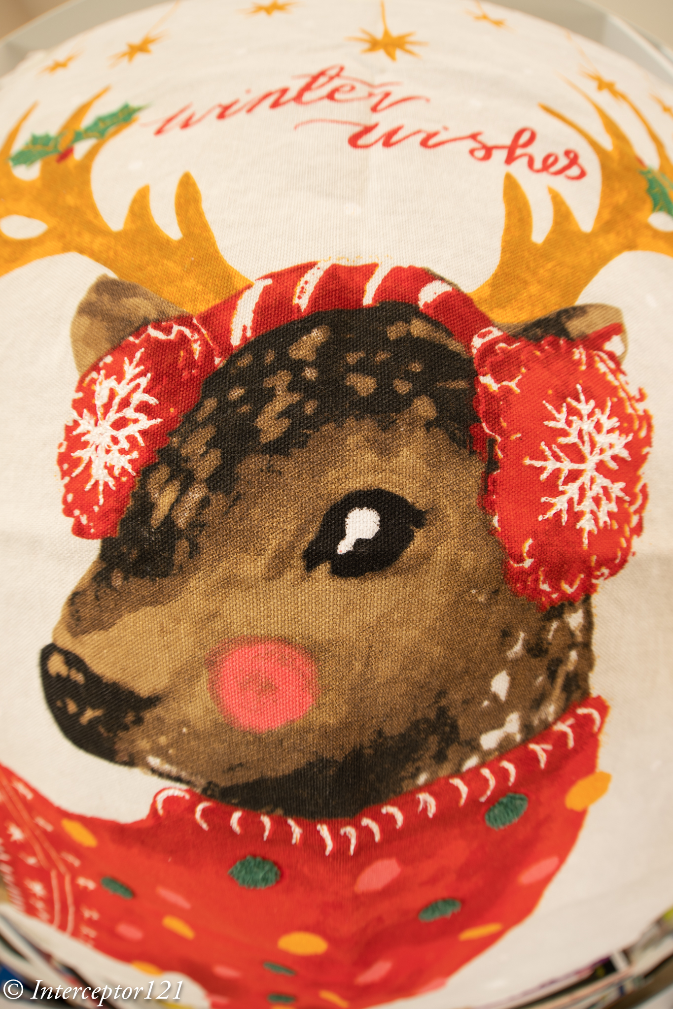 This is a tea towel shot with a rectilinear lens. Note how sharp the target is at f/5.6