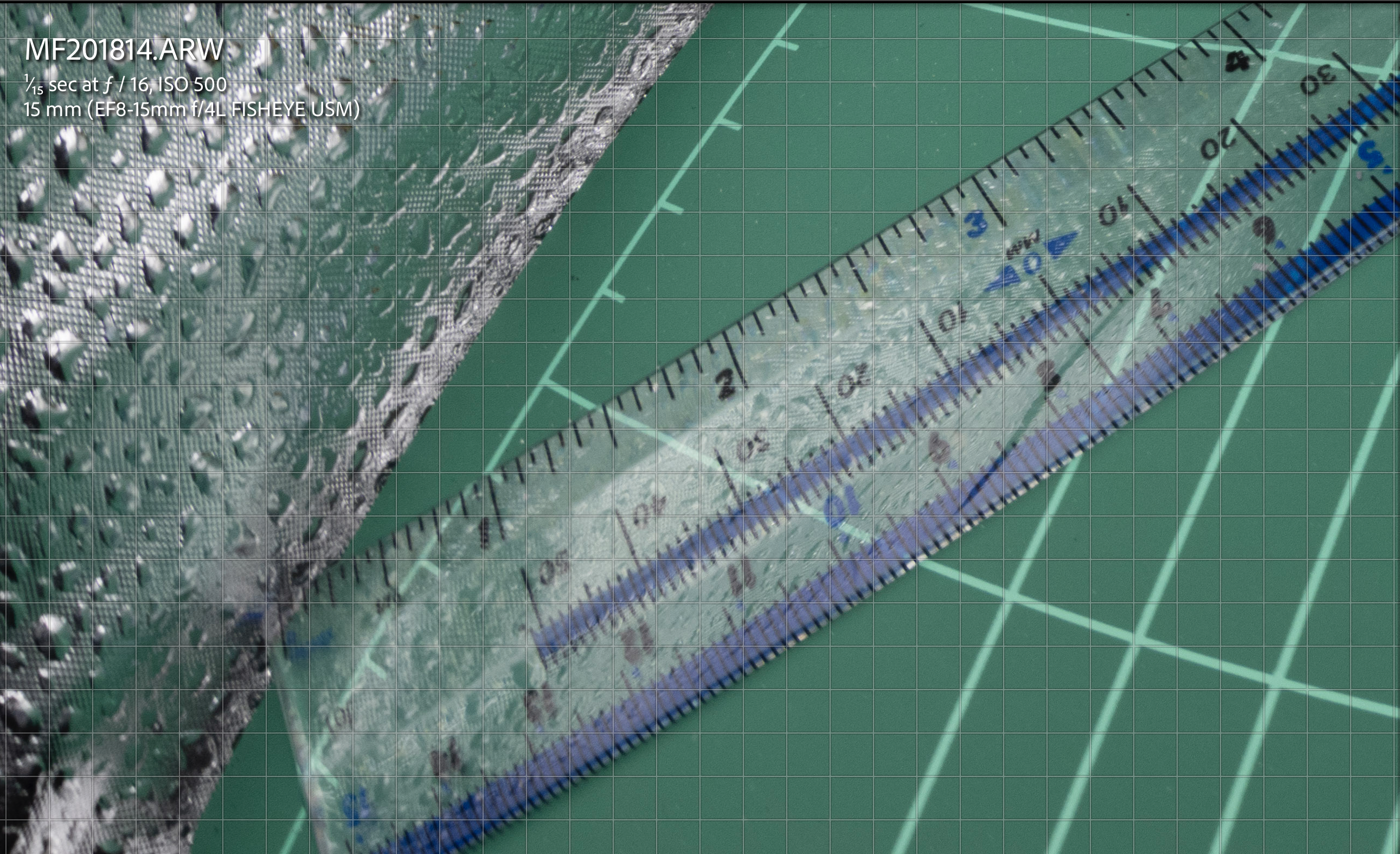 In order to understant how the barrel distortion works in combination with a dome port and a fisheye lens we can build a small simulation in a light box where the edges of the frame are closer than a flat target.