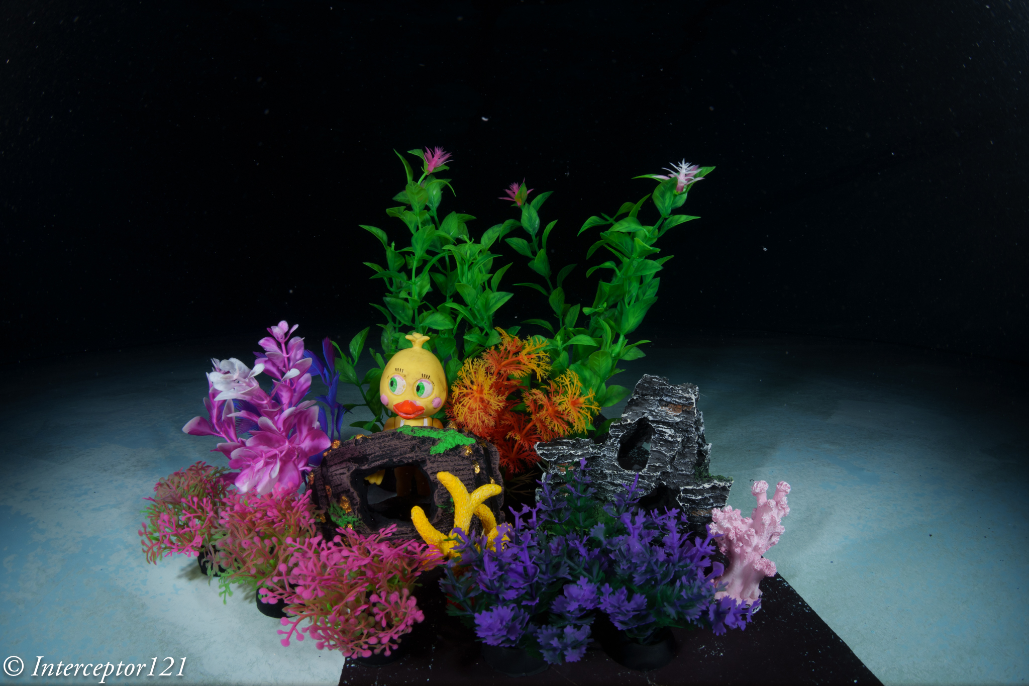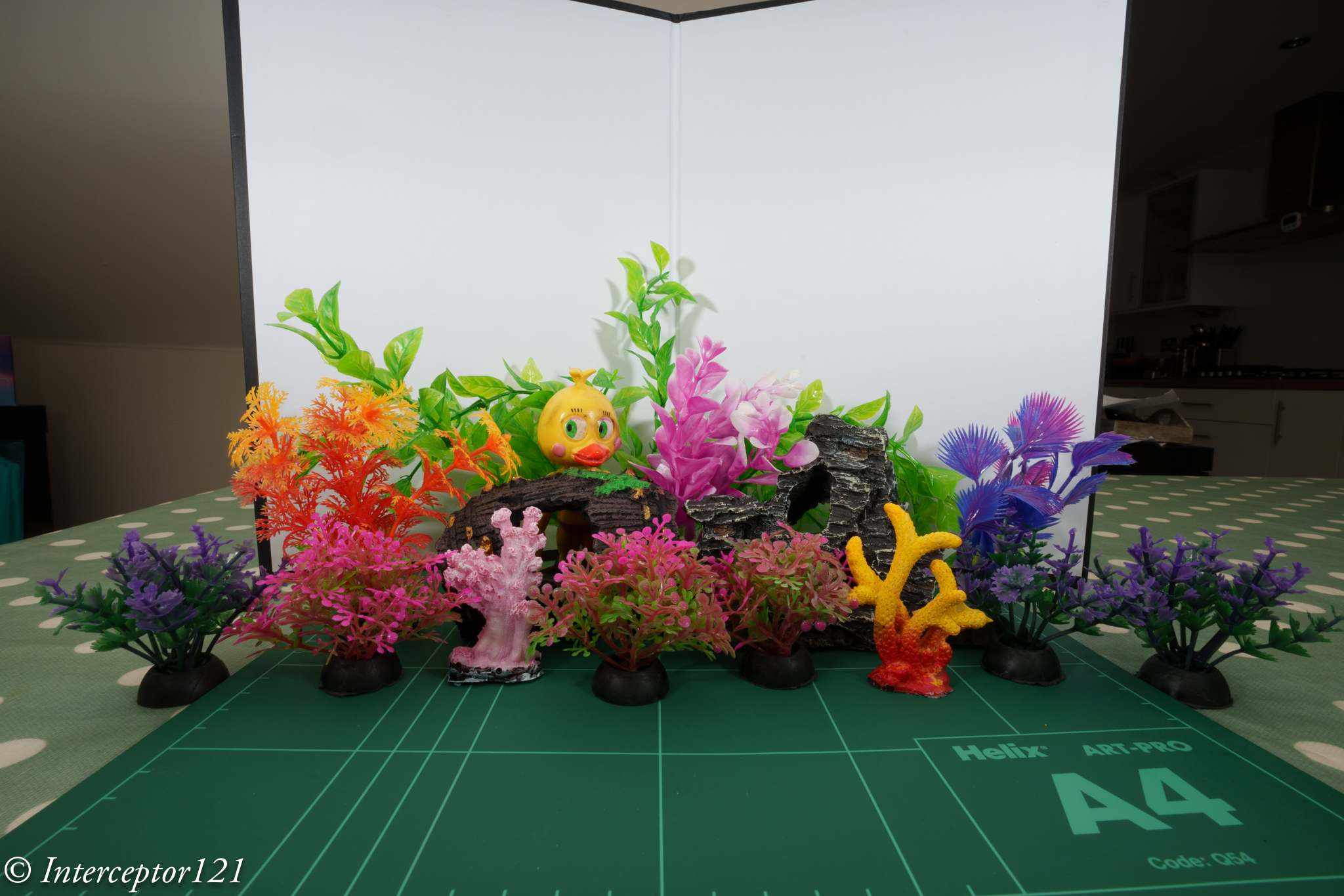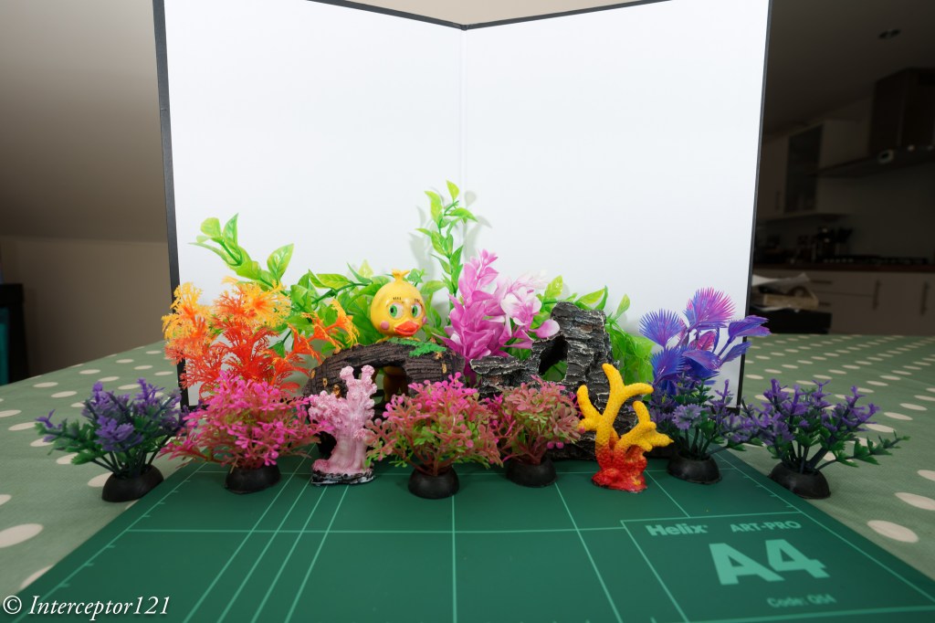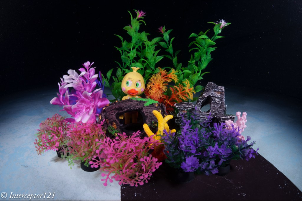 As final example this is a shot at f/11 with focus just behind the fake coral red and yellow on the right.