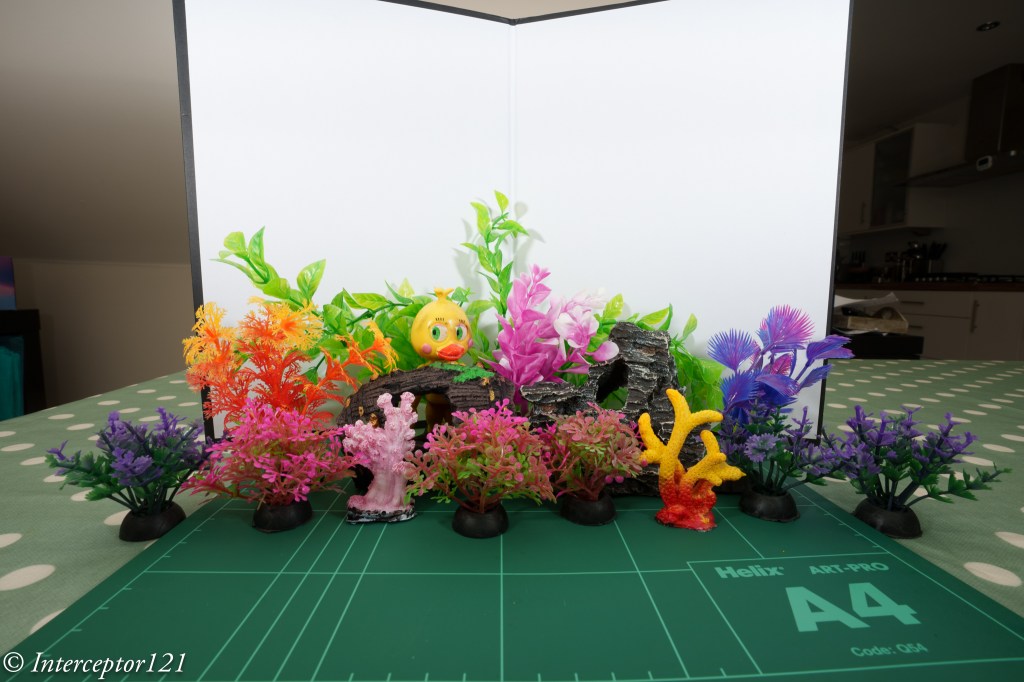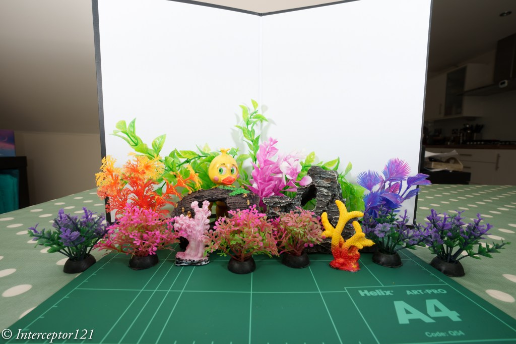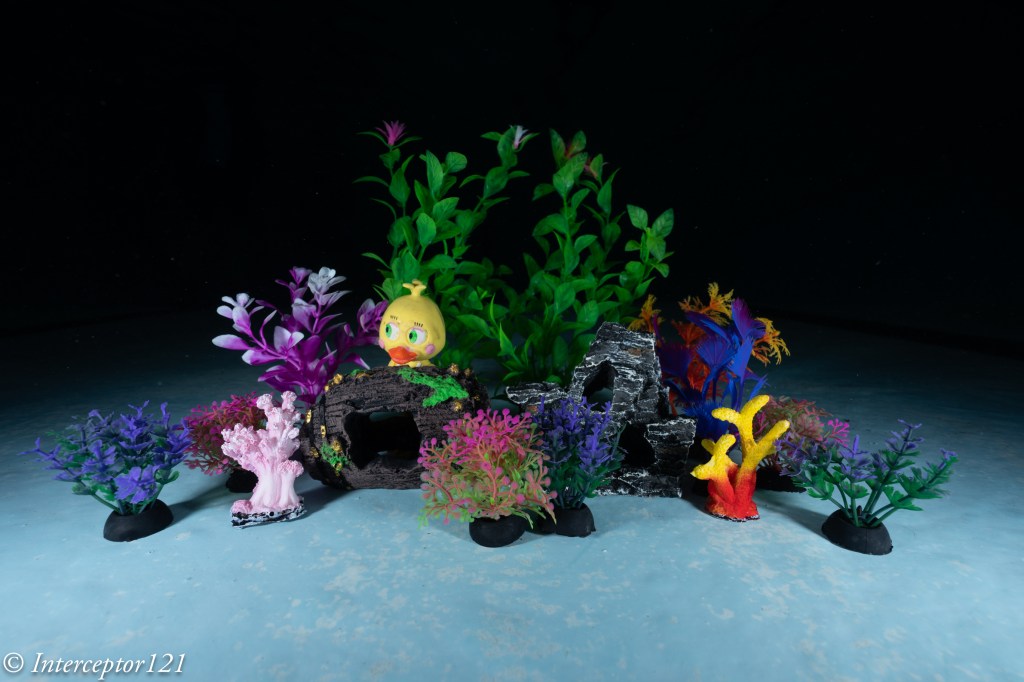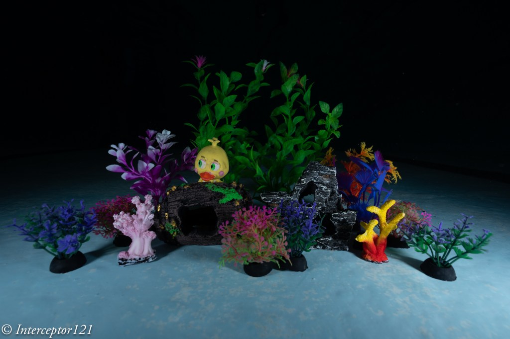 As final example this is a shot at f/11 with focus just behind the fake coral red and yellow on the right.