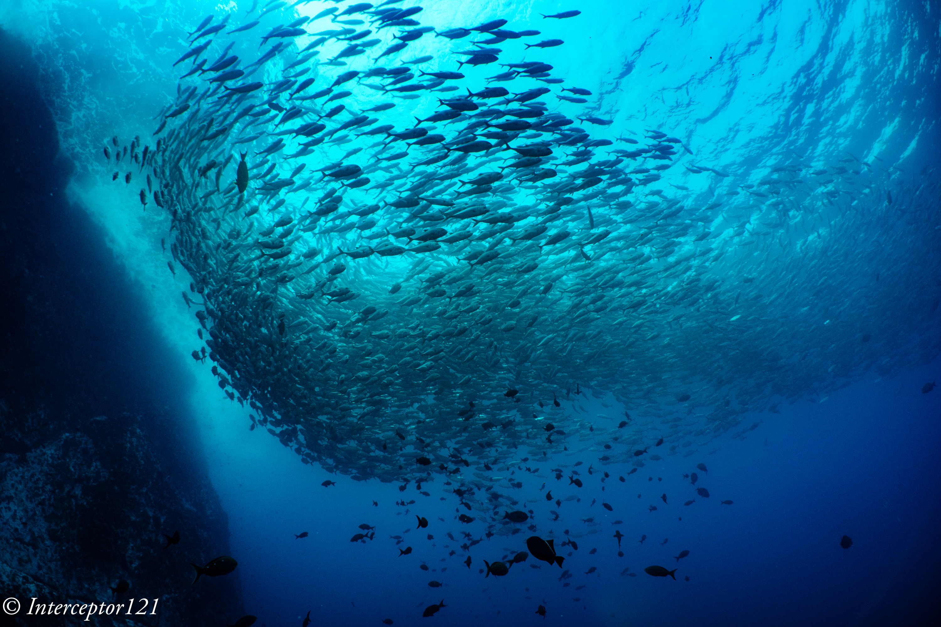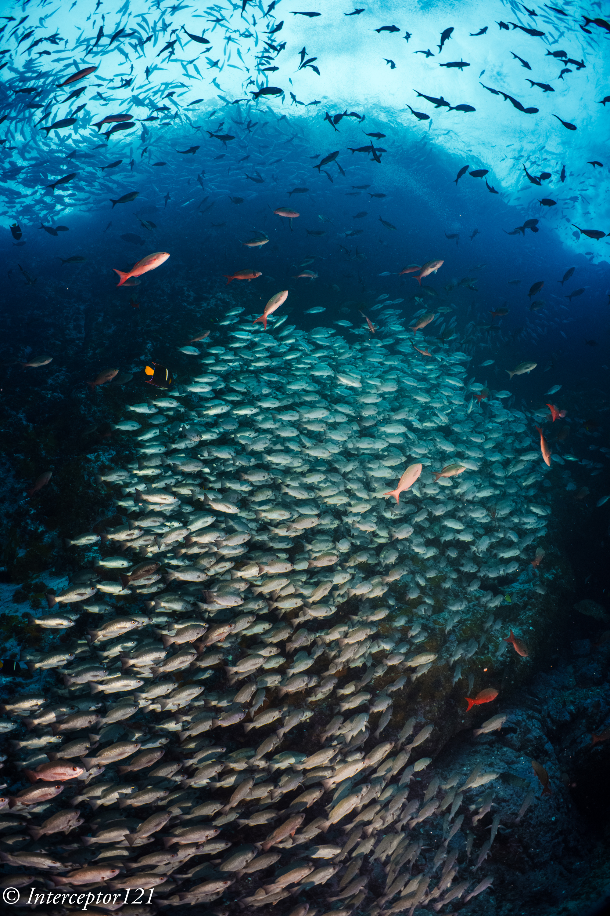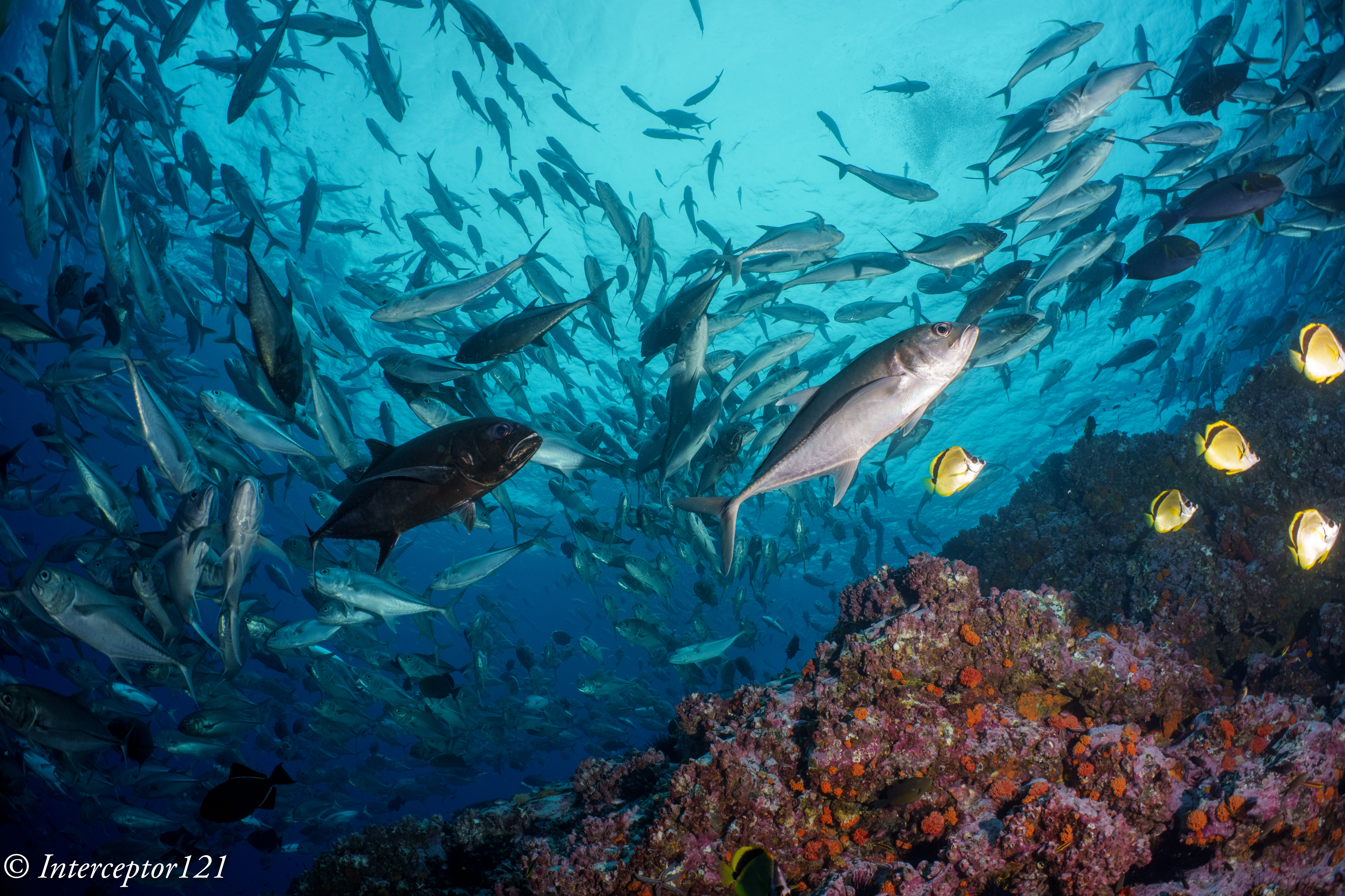 The school of trevallies there is no doubt the biggest school I have ever seen to date and lends itself to all sorts of wall to wall shots.