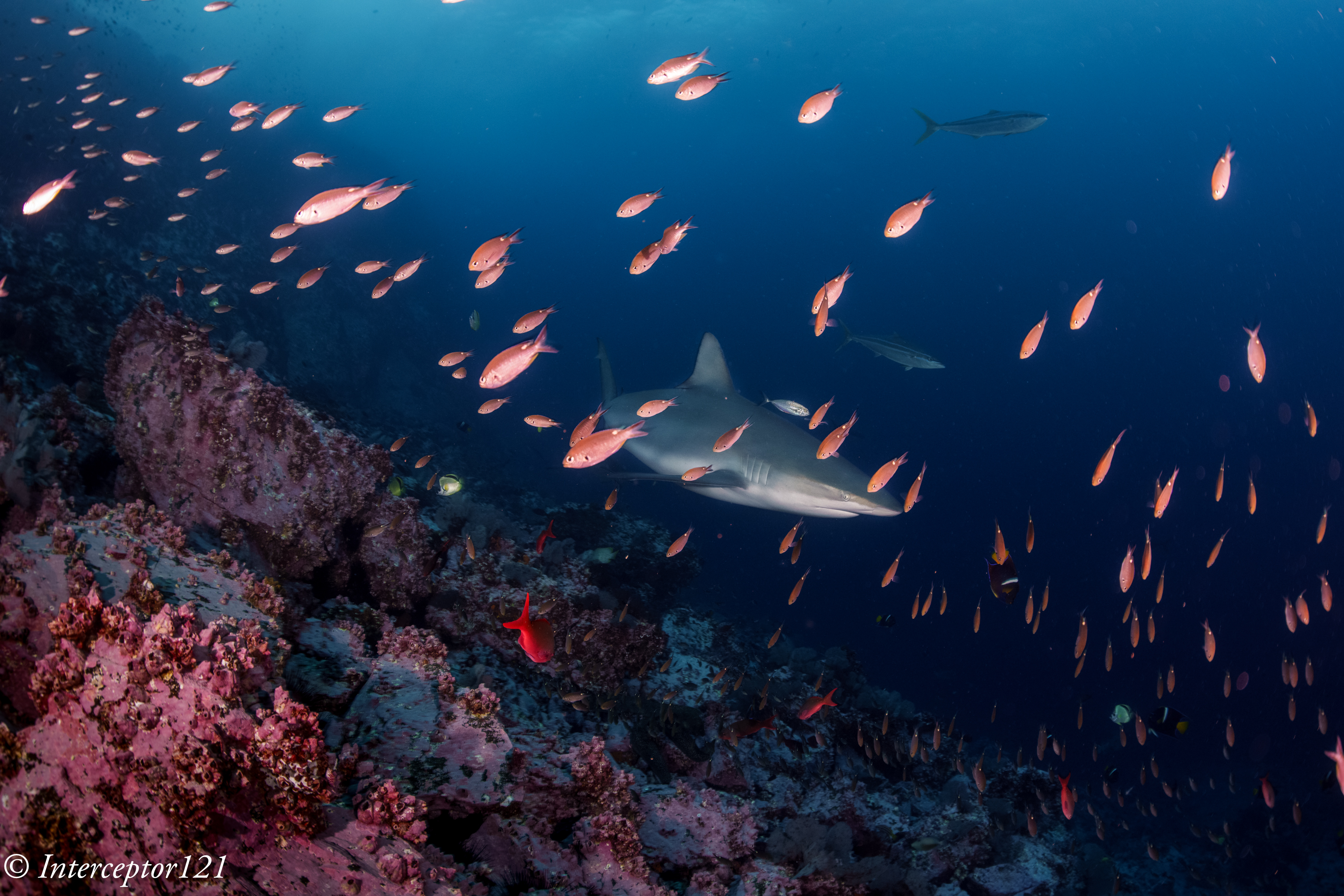 A school of snappers in Malpelo makes the perfect target for a wet optic as the reef is behind and everything looks sharp across the frame at f/11.